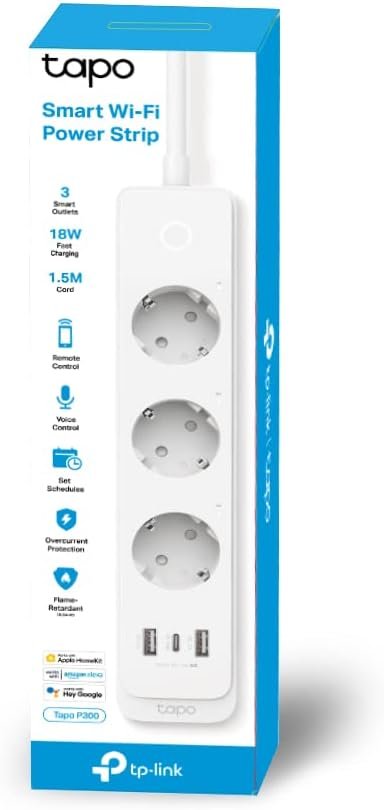 Tapo P300 Regleta Inteligente Wi-Fi con 3 Tomas y 3 USB, Carga Rápida 18W, Compatible con Alexa y Google Home, Regleta Alexa Programable con Función de Temporizador