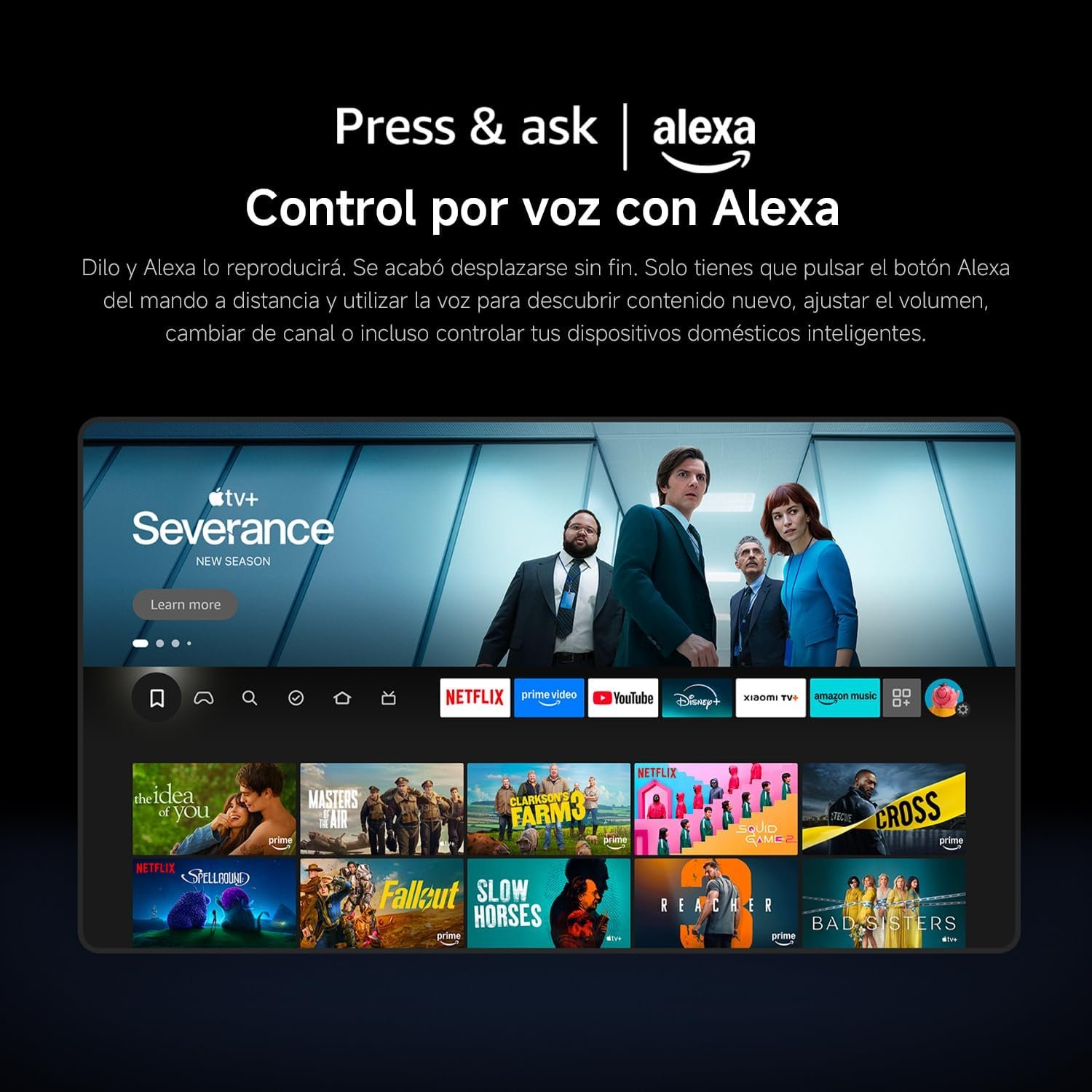 1 Fire OS 2 Control por voz con Alexa 3 Xiaomi TV+ Streaming
