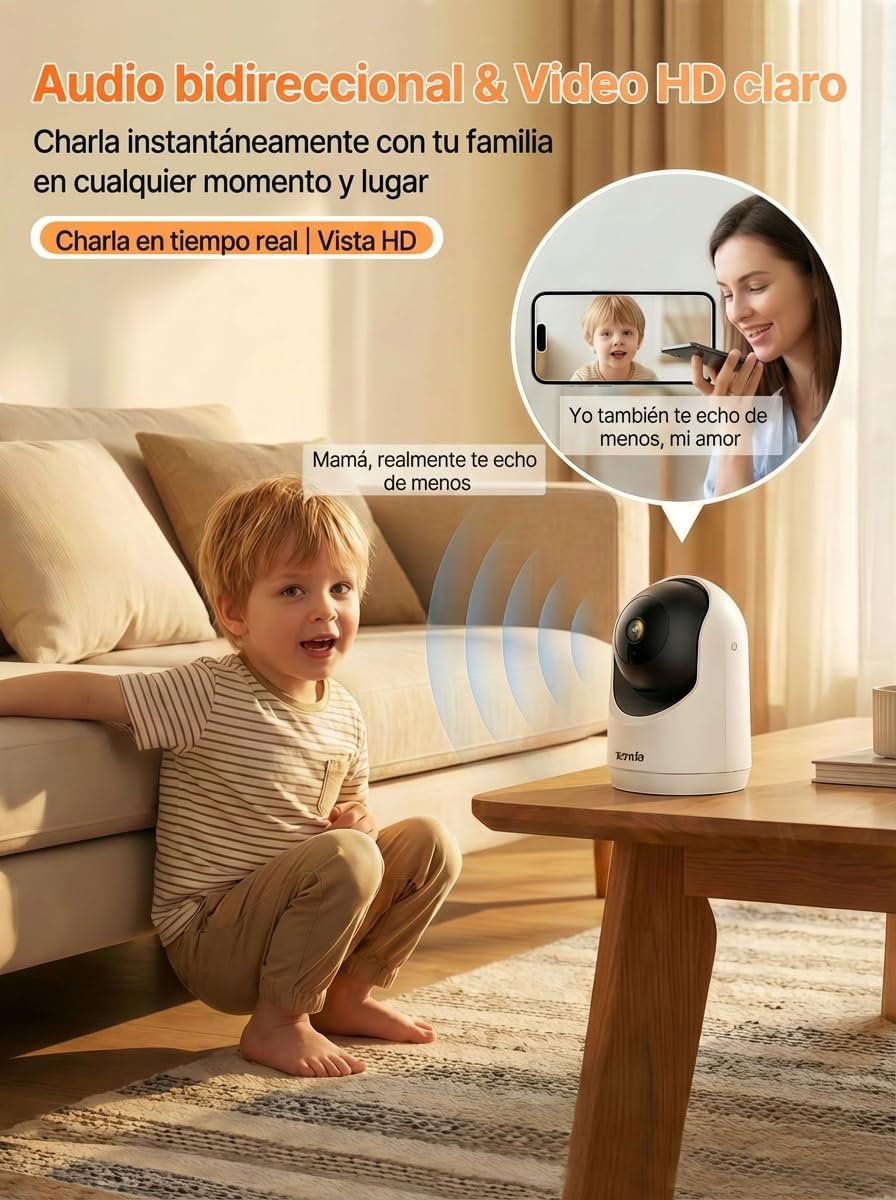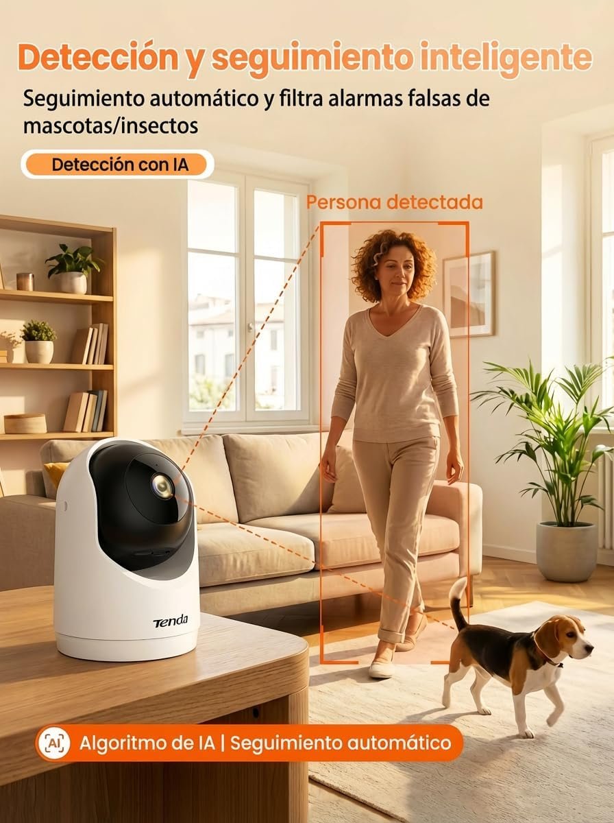 Tenda Cámara de Vigilancia WiFi Interior 2K, WiFi 6 360° para Bebés/Mascotas, Detección Humana AI de 3MP, Seguimiento de Movimiento, Visión Nocturna, Audio, No Requiere Suscripción