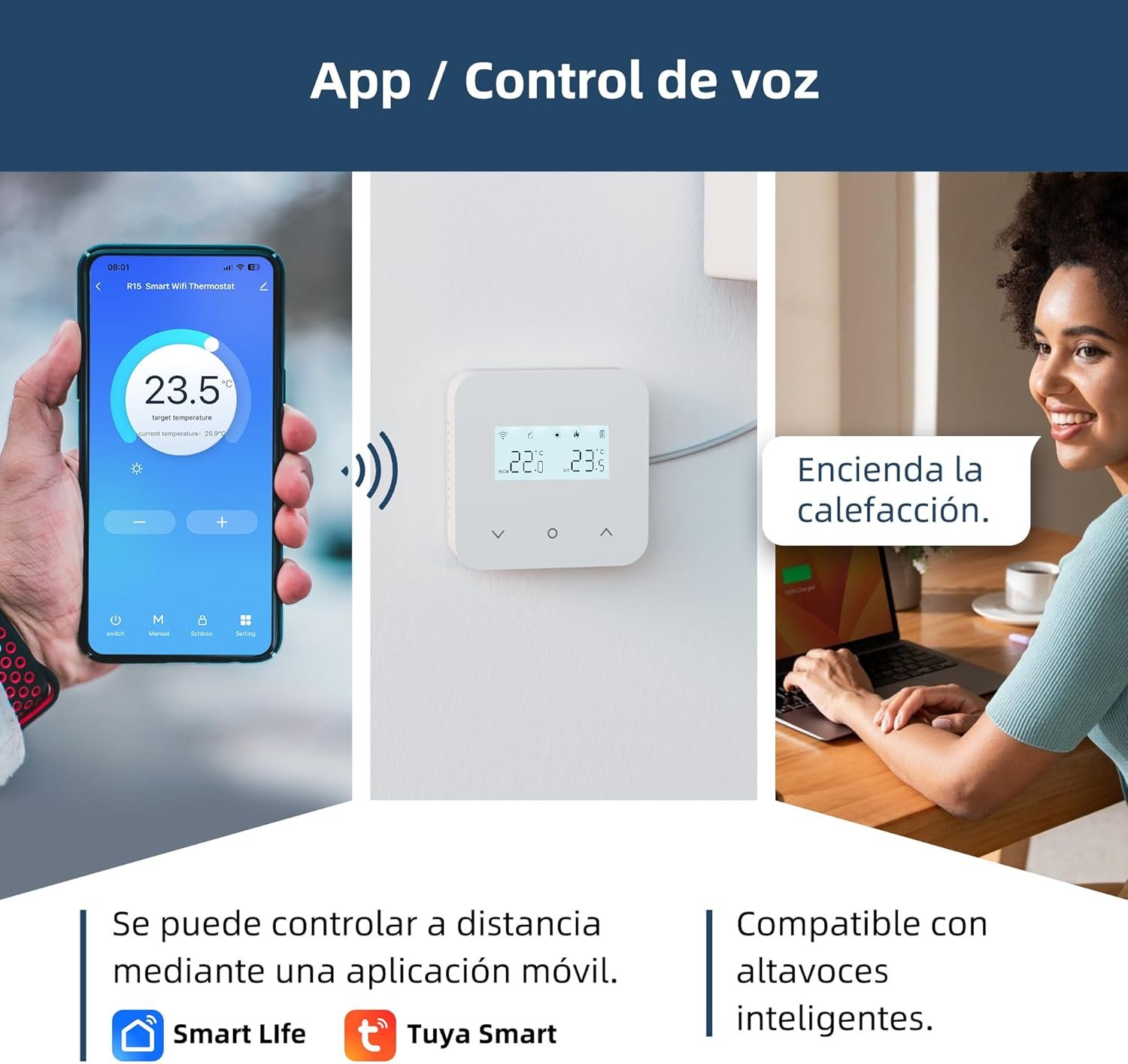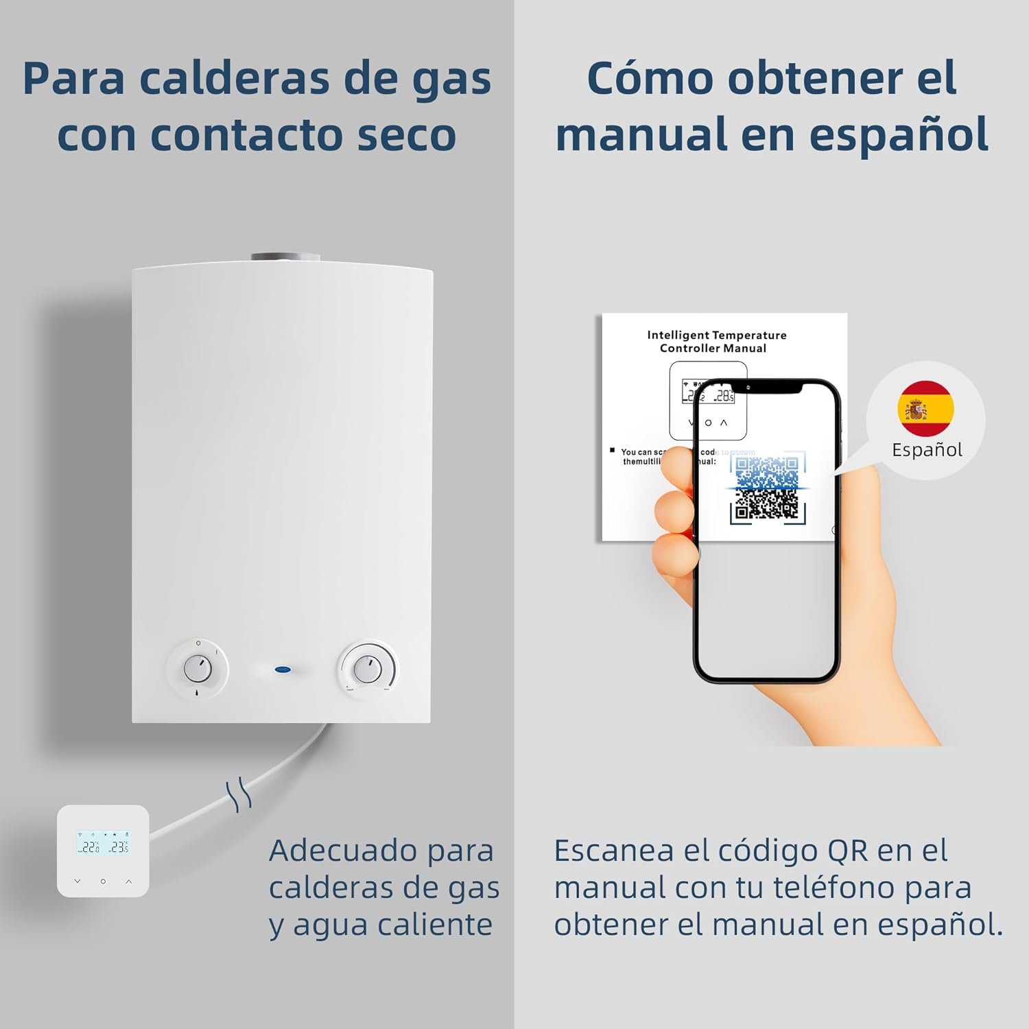 Fotos: Termostato wifi con batería, apto para calderas de gas de 2 hilos. Termostato programable diario, controlable vía Tuya o Smart Life. Es compatible con el Asistente de Google y Alexa.