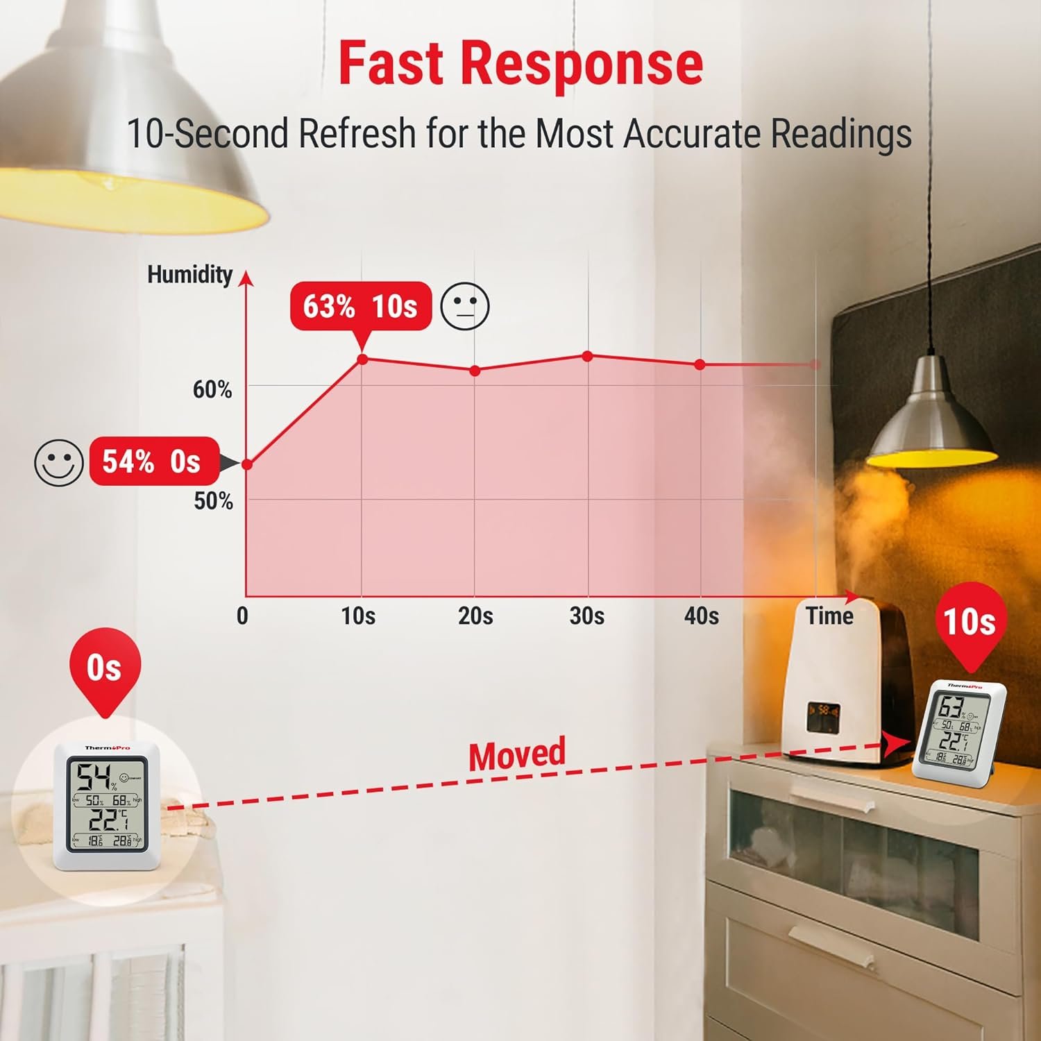 - 32% ThermoPro TP50 Termómetro digital higrómetro Termómetro interior higrómetro Medidor profesional para medición de temperatura y humedad del entorno doméstico