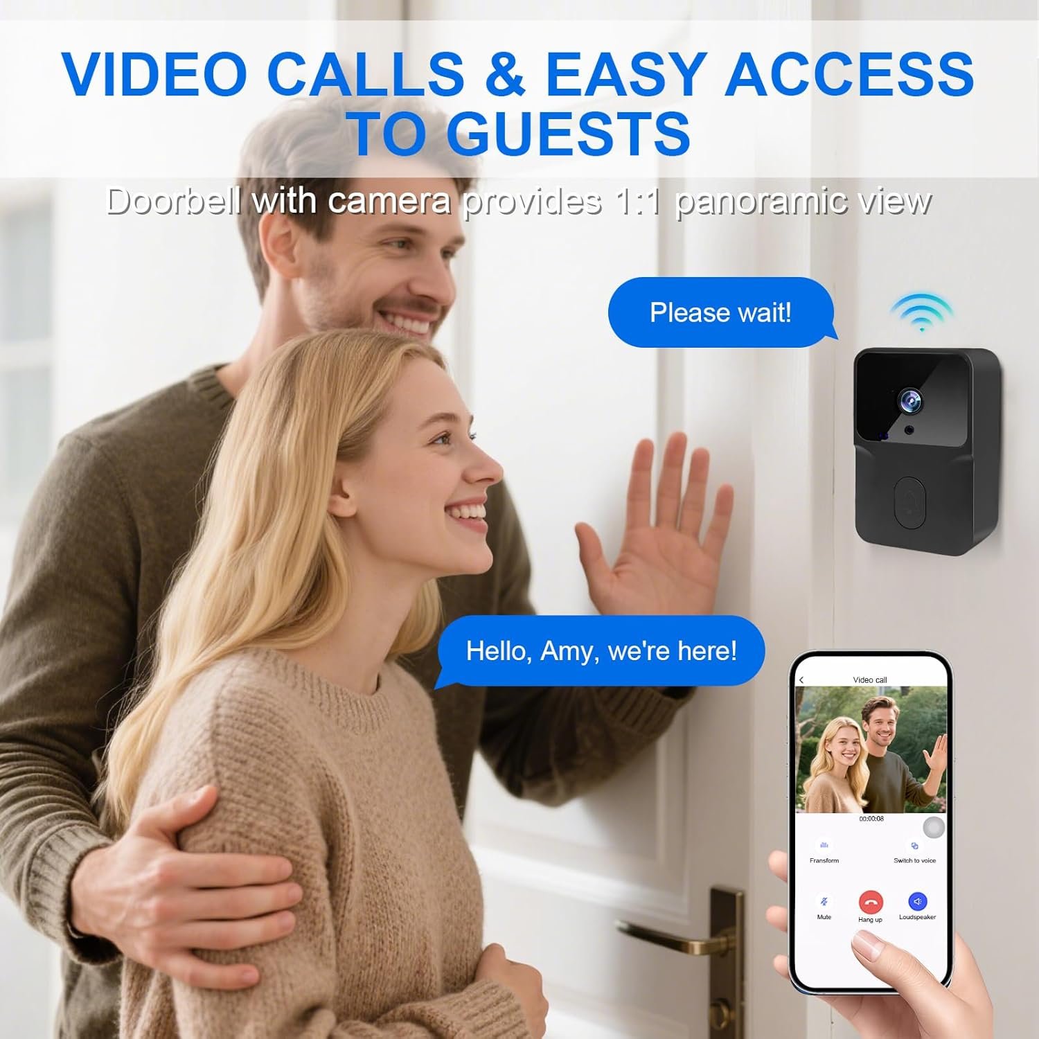 【Audio bidireccional】Ya sea que estés en casa o fuera, podrás comunicarte con tus visitas en tiempo real sin abrir la puerta. Incluso fuera de casa, no perderás ninguna visita ni despertarás sospechas. Este videotimbre inalámbrico te permite realizar videollamadas y llamadas de voz, grabaciones cortas y compartir tu cuenta con hasta nueve miembros de la familia.
