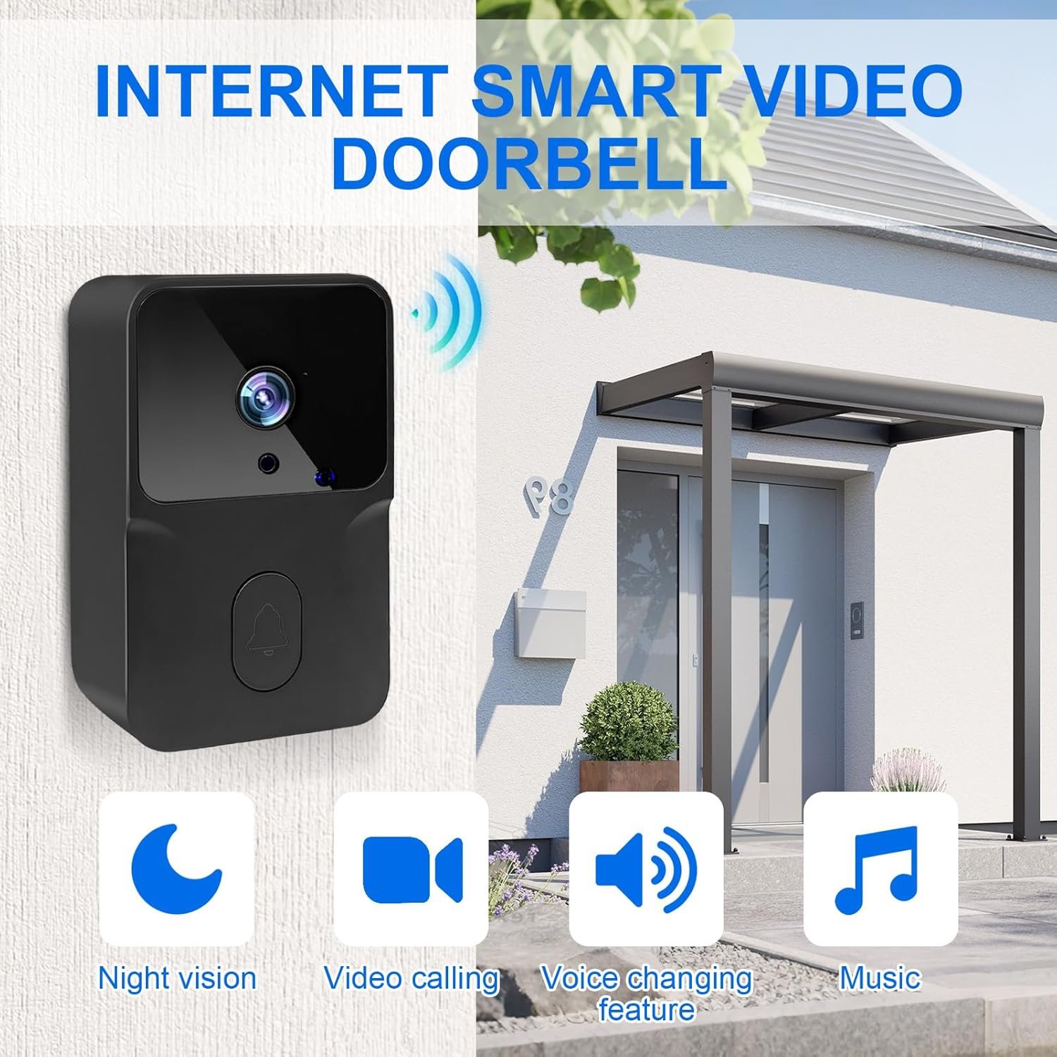 – La cámara del timbre inalámbrico cuenta con visión nocturna infrarroja incorporada y resolución HD de 1080P.