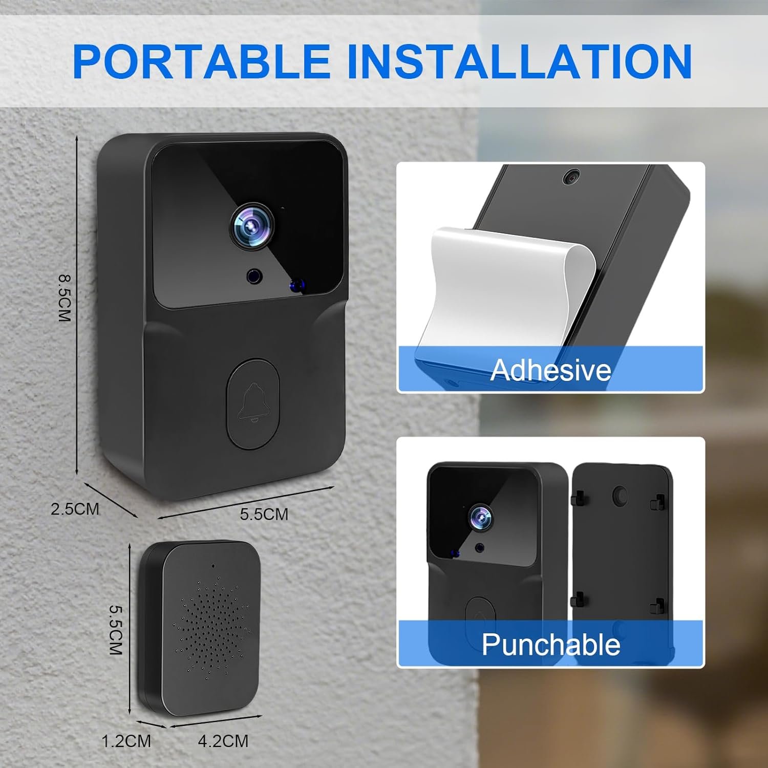 【Conexión Wi-Fi de 2,4 GHz】Este timbre inalámbrico con cámara está diseñado para Wi-Fi de 2,4 GHz, lo que ofrece una mayor penetración en las paredes y una cobertura más amplia, lo que garantiza una conexión rápida y estable (no es compatible con Wi-Fi de 5 GHz). El timbre con vídeo que funciona con batería ofrece varias opciones de configuración, lo que le permite personalizar el timbre según sus necesidades.