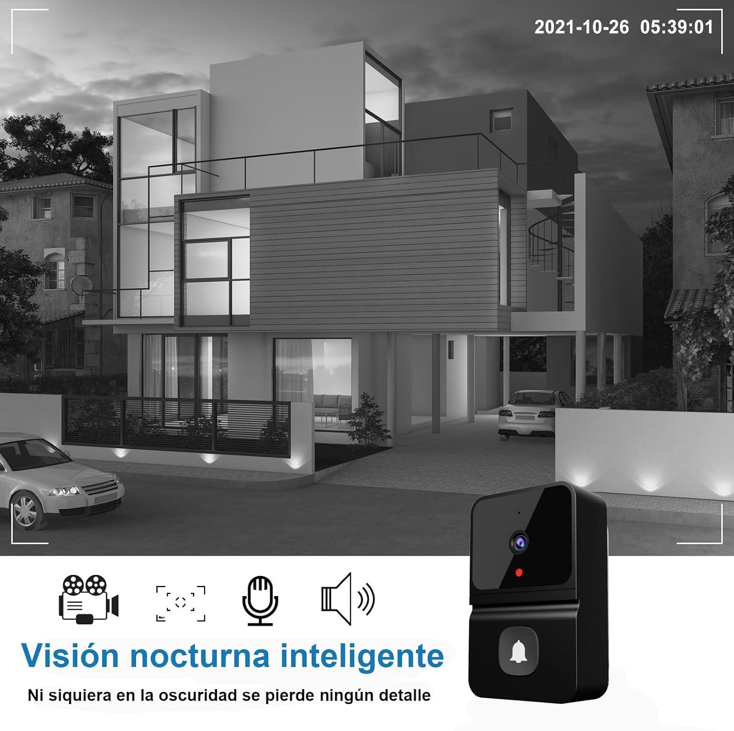 Timbre inalámbrico con cámara, WiFi 480P, videoportero automático, almacenamiento en la nube, timbre inteligente con visión nocturna, audio bidireccional (negro)