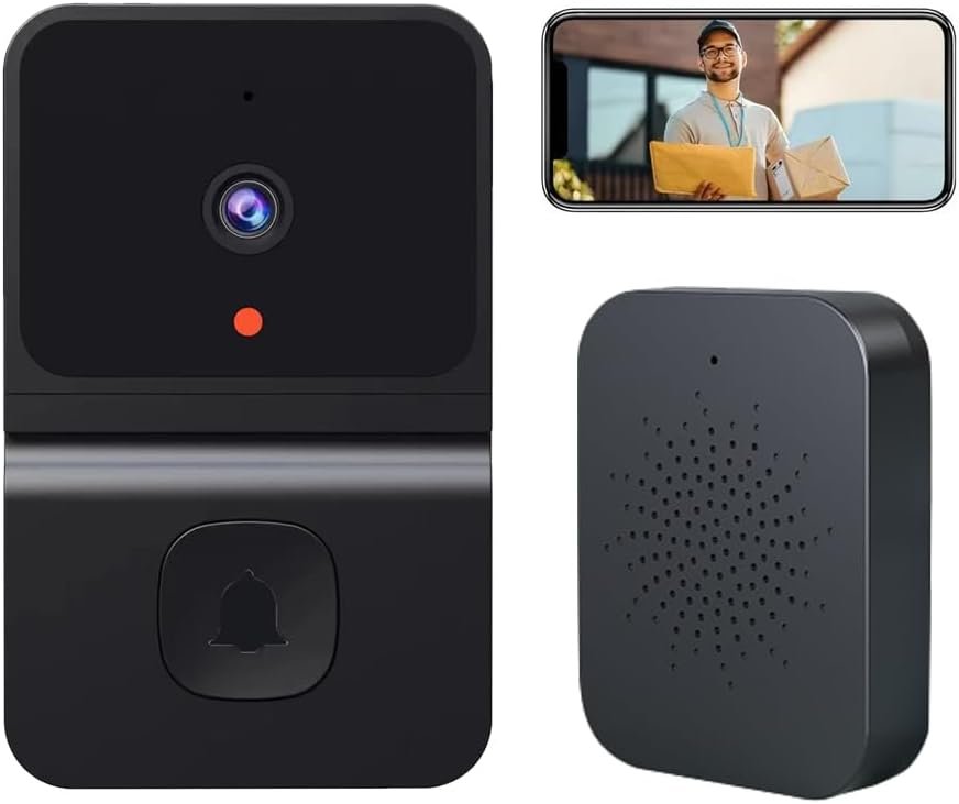 La conexión WIFI, sin cables, realiza la intercomunicación bidireccional entre el timbre y el teléfono. Teléfono móvil en tiempo real, soporte de conversación bidireccional, tomar fotos, grabar, cuidar a su familia le da más tranquilidad. Comunicarse con los visitantes a través de audio bidireccional, con micrófono con reducción de ruido. Puede monitorear su puerta principal viendo un video en vivo. Esta máquina de timbre de puerta tiene funciones completas, rendimiento confiable y aspecto hermoso. La situación frente a la puerta se dominará por completo, lo que te hará sentir más cómodo en cualquier momento y lugar. El timbre de la puerta se puede controlar a través de APP, modo de trabajo automático, inteligente y portátil. (ayuda 2.4g WIFI, no ayuda 5G WIFI) El paquete incluye: 1 x Timbre inalámbrico Inteligente 1 x El timbre 1 x Cable de carga USB 3 x tornillos 2 x ANC 1 x Instrucciones