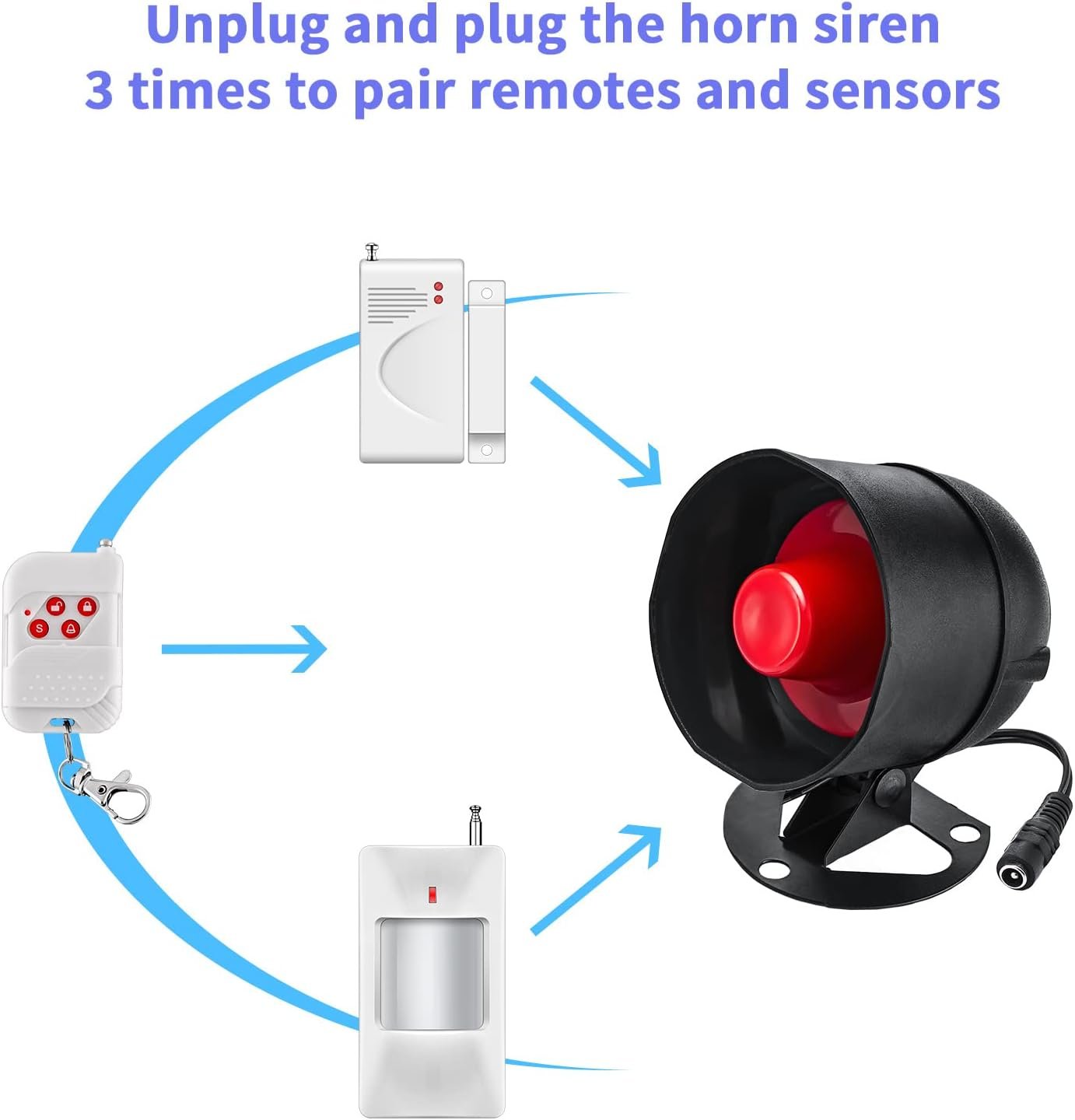 【Control de largo alcance】 El alcance de control de la sirena es de hasta 100 metros con el control remoto. Es conveniente que puedas controlarlo a distancia. Puedes usarlos en tu apartamento, tienda o almacén.
