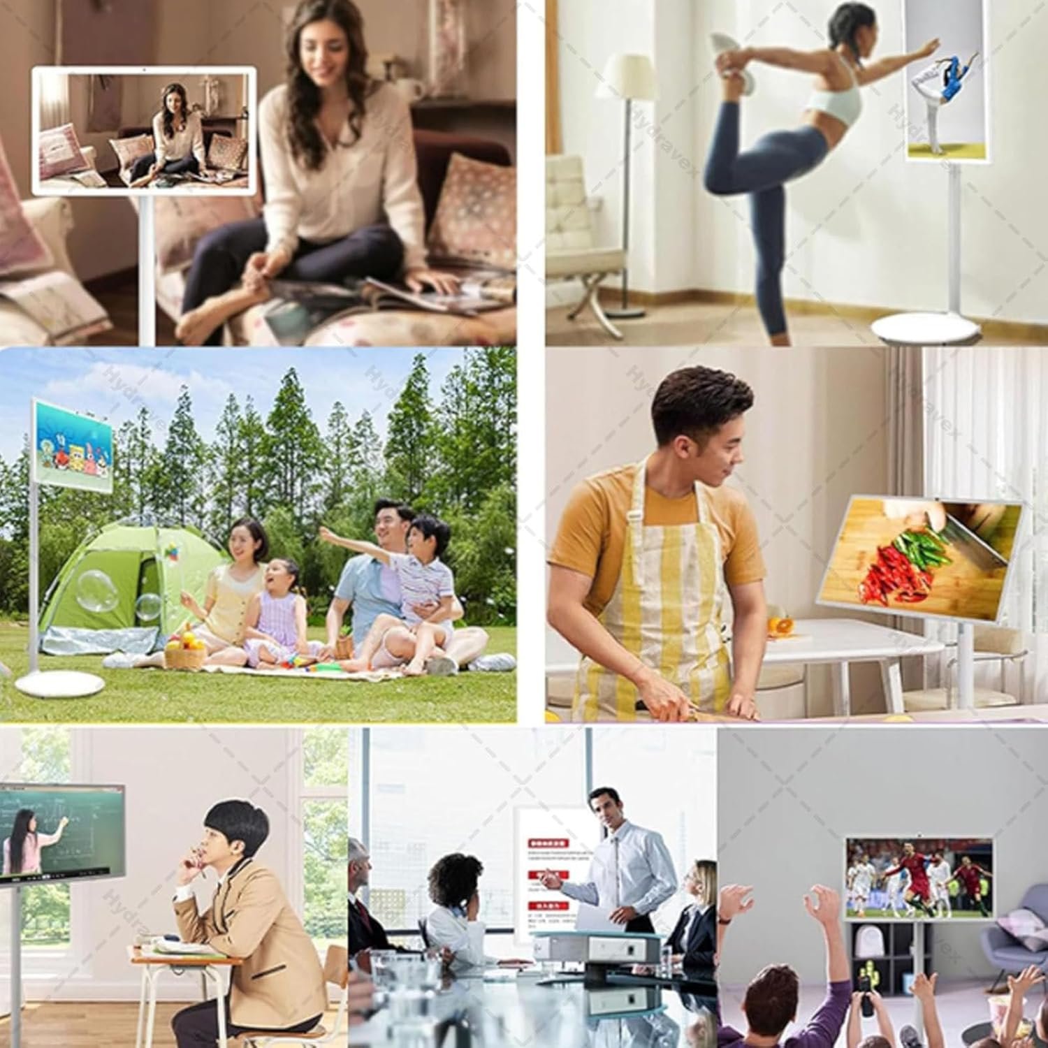 【Poste plegable de doble sección】Pantalla inteligente portátil. Innovador diseño de poste plegable para almacenamiento compacto y portabilidad. Equipado con 5 ruedas omnidireccionales silenciosas para una movilidad sin esfuerzo en interiores y exteriores. La pantalla se ajusta en altura, rotación e inclinación para obtener ángulos de visión óptimos durante la cocina, el yoga, las reuniones o las noches de cine.
