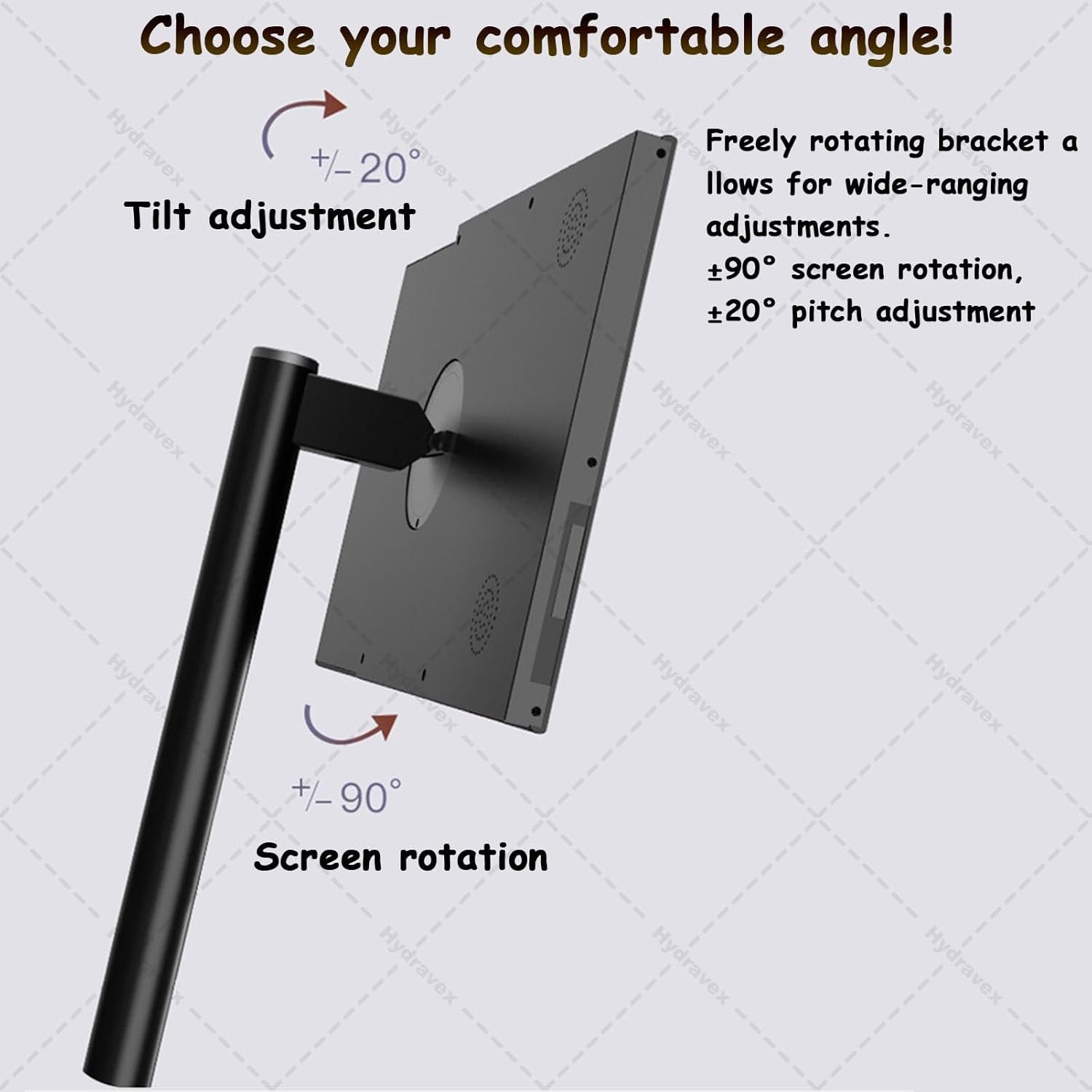 Ángulo de visión: rotación de pantalla de ±90°, ajuste de inclinación de ±20°