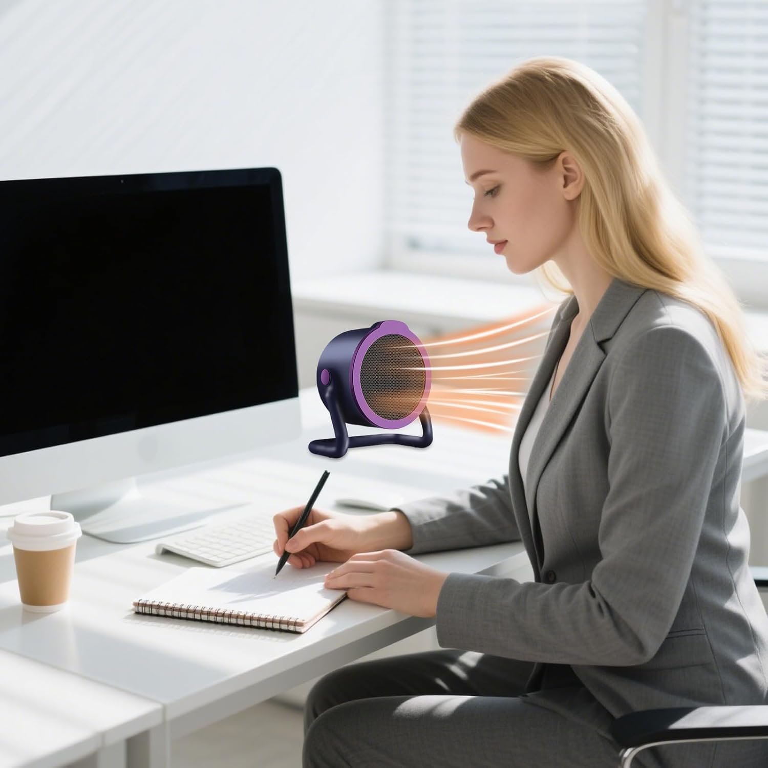 Disfrute de un calor confiable con este calentador portátil, diseñado para uso versátil en condiciones de frío. La funcionalidad de dos modos le permite alternar entre configuraciones de ventilador y calefacción, proporcionando un calentamiento rápido cuando más lo necesita. Su rotación de 360 ​​grados asegura una distribución uniforme del calor, lo que lo hace energéticamente eficiente para el hogar, estudio u entornos al aire libre. Compacto y portátil, este calentador es ideal para colocarlo en escritorios en salas de estar, dormitorios, habitaciones universitarias, garajes, tiendas de campaña o vehículos recreativos durante viajes de camping invernal o desplazamientos. Aporte comodidad a su trabajo o proceso de estudio mientras mantiene los espacios fríos cálidos y acogedores.
