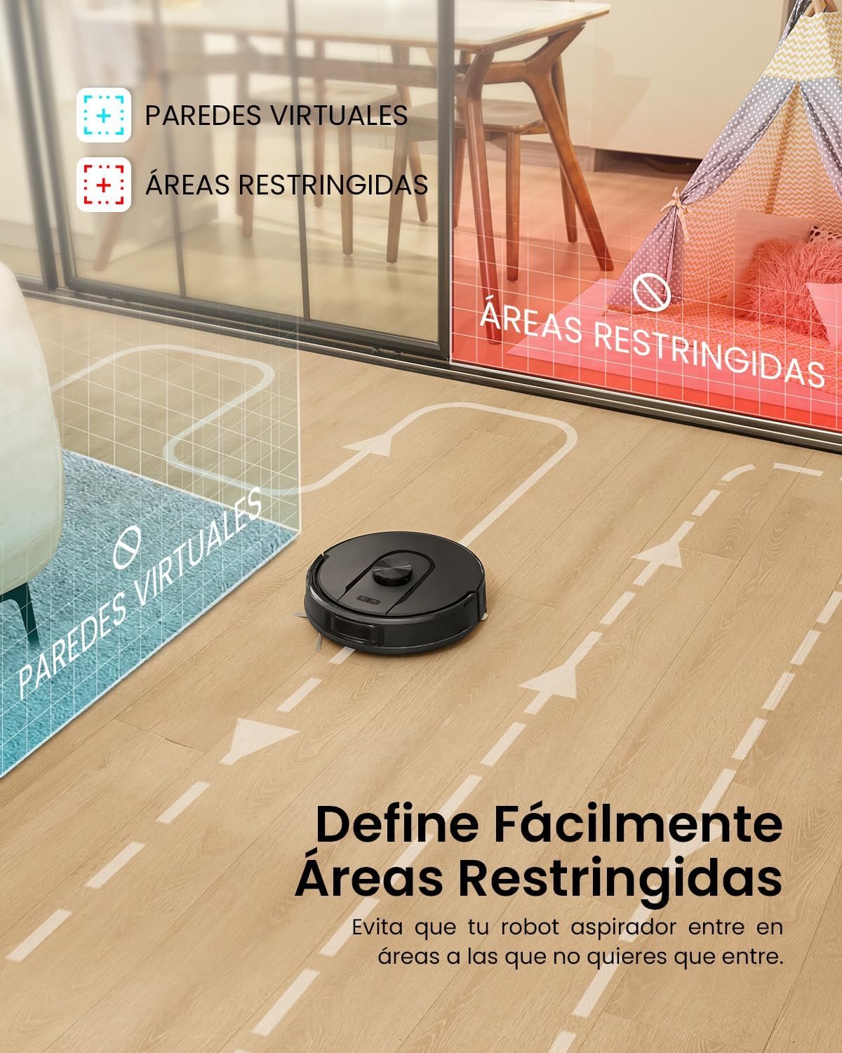 Navegación láser LDS de 360° & Función de MapeoPotente Succión de 5000PaGestión Inteligente de Áreas Restringidas