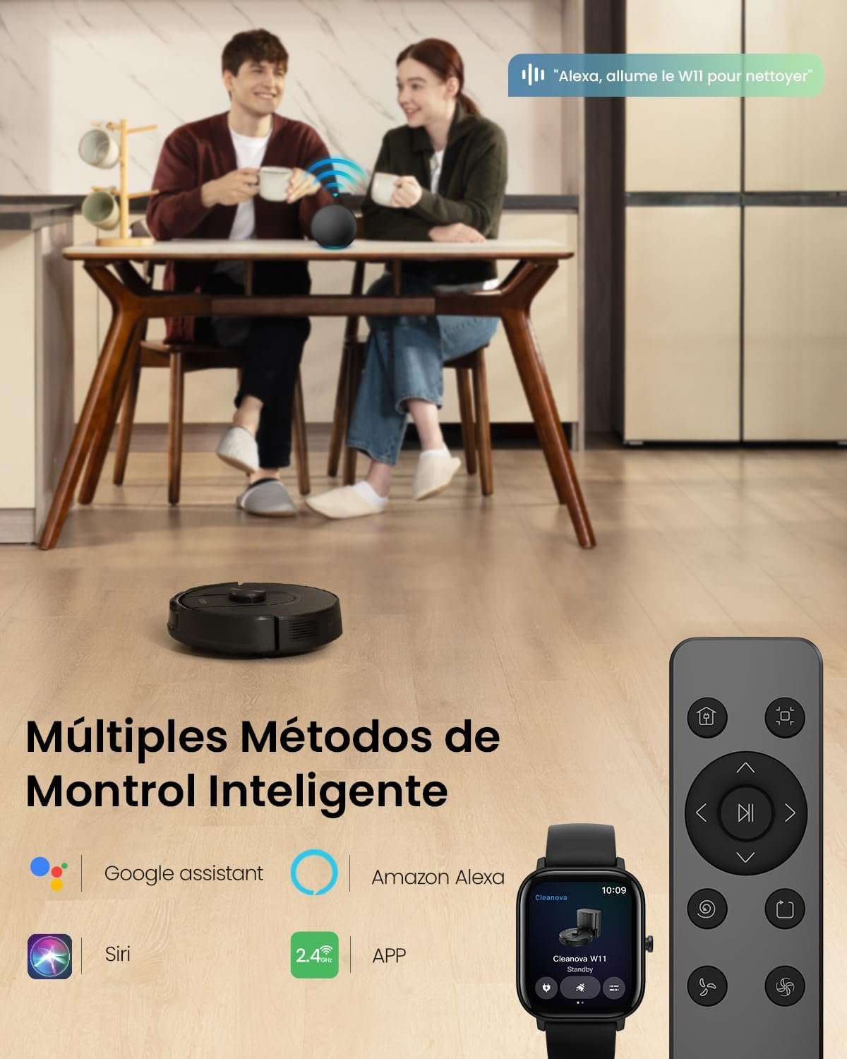 【Aplicación y control de voz】Controle fácilmente el W11 a través de la aplicación para seleccionar modos de limpieza, configurar zonas prohibidas/paredes virtuales, programar limpiezas, etc. Además, es compatible con Siri, Google Assistant y Alexa, lo que permite un control de comandos de voz sin esfuerzo. Una experiencia de limpieza más inteligente y cómoda