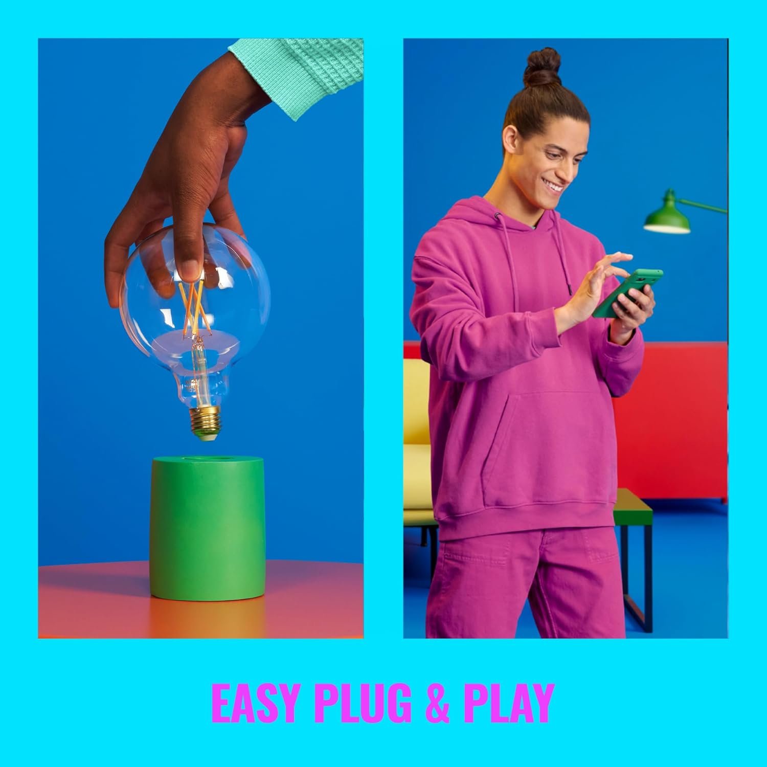 Plug & Play: Conéctate a través de Wi-Fi: WiZ funciona con tu enrutador Wi-Fi, por lo que no necesitas ninguna conexión adicional. Simplemente conecta tu nuevo accesorio, descarga la aplicación WiZ y ¡listo! Obtenga control manos libres de sus luces y use los atajos de Google Voice and Assistant, Amazon Alexa o Siri. Utilice comandos de voz sencillos para encender o apagar las luces, intensificar o regular su brillo, cambiar colores y configurar escenas de iluminación personalizadas.