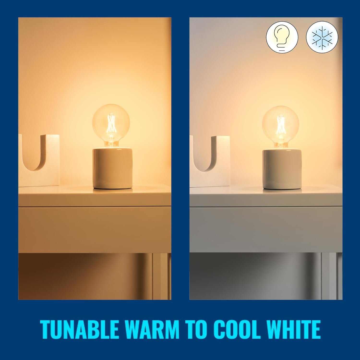 Cree el ambiente adecuado con luz blanca cálida o fría ajustable. Elija entre una amplia variedad de estimulantes luces blancas frías hasta suaves luces blancas cálidas, con nivel de brillo ajustable desde el teléfono inteligente, el control remoto WiZ o simplemente por voz.