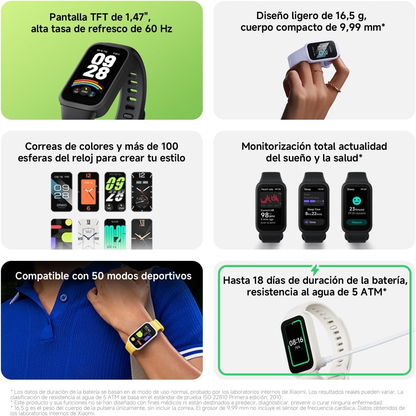 XIAOMI Smart Band 9 Active – Seguimiento de Actividad, Autonomía de hasta 18 Días, Pantalla TFT de 1,47″ con Frecuencia de Actualización de 60 Hz, 5ATM, App Mi Fitness, Negro (Versión ES)
